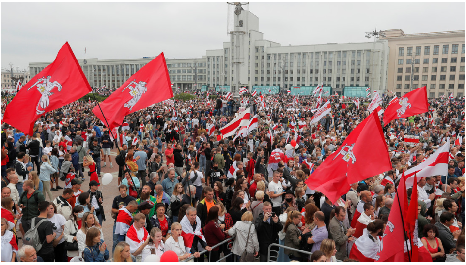 Δεκάδες χιλιάδες άνθρωποι συγκεντρώθηκαν αυτήν την Κυριακή στο κέντρο του Μινσκ, την πρωτεύουσα της Λευκορωσίας, για να διαδηλώσουν εναντίον του προέδρου της χώρας, Αλεξάντερ Λουκασένκο, του οποίου η νίκη στις εκλογές στις 9 Αυγούστου, δεν αναγνωρίζουν